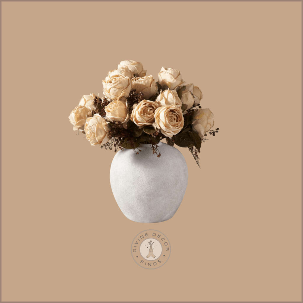 These faux spring floral arrangements offer a warm, timeless take on seasonal styling, bringing a sense of softness and quiet elegance into your home. The muted beige roses create a look that feels both refined and relaxed, making them a beautiful alternative to traditional spring florals.