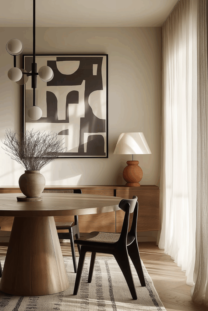 Minimalist Dining with Warm Woods