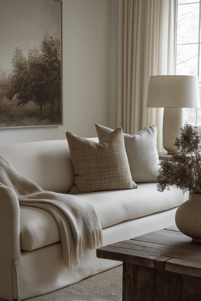 Rather than replacing furniture or repainting, focus on subtle adjustments using what you already own. Soft winter decor ideas often begin with textiles and accents that can be easily swapped or re-layered: