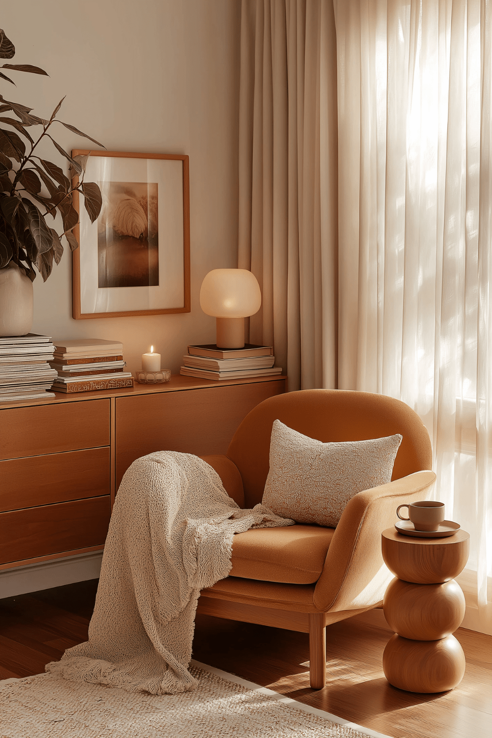 Lighting has a way of transforming a corner from ordinary to deeply inviting. The soft glow of warm autumn home design brings a touch of magic to any cozy space, wrapping it in an amber-hued calm that instantly soothes the senses. Instead of harsh overhead lights, think layers of light that cast a warm, flattering glow over your reading nook or lounge corner.