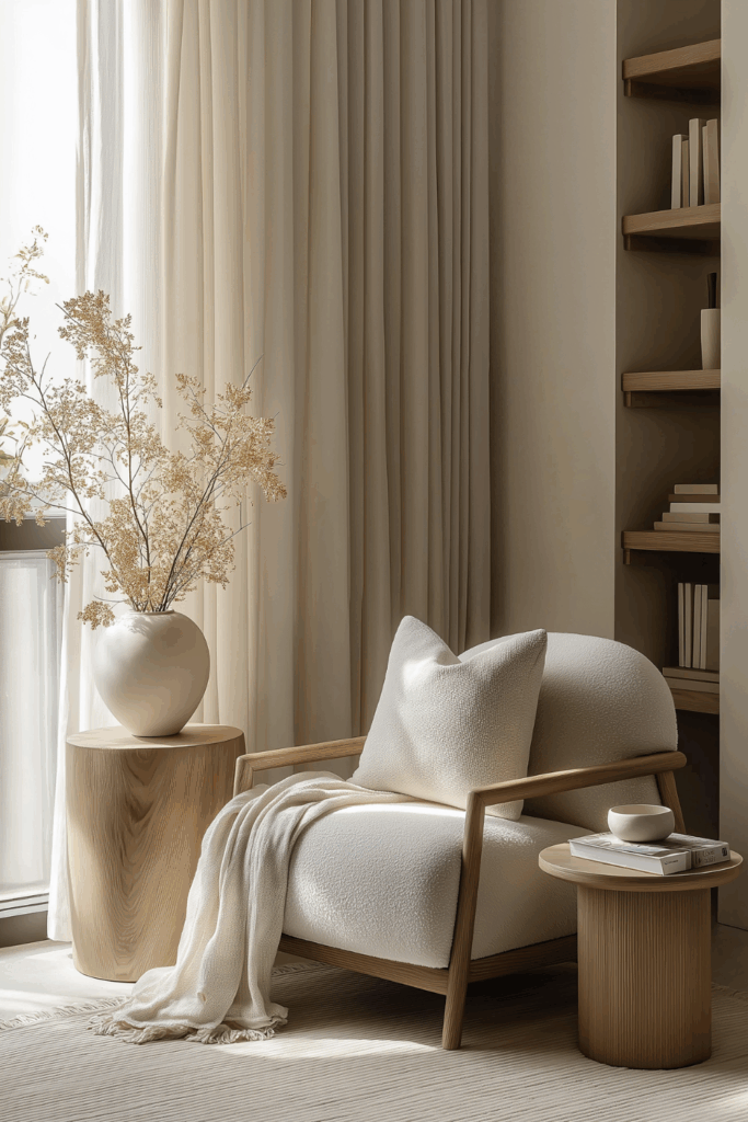 - Keep your palette neutral and your textures intentional for a calm, organic finish.