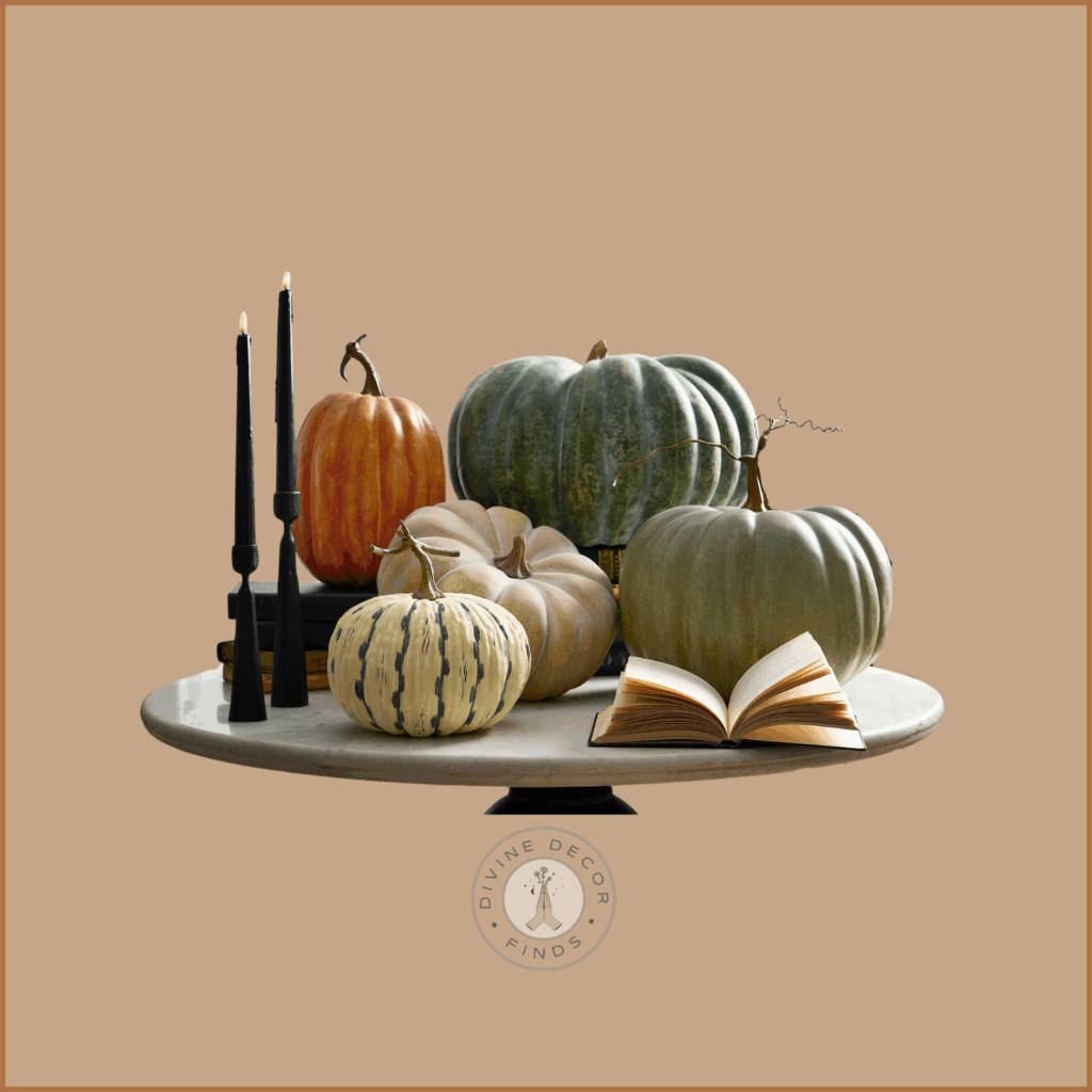 Style Tip: Arrange a few ivory and green pumpkins together on open shelving or a coffee table tray. Keep the palette soft and cohesive for a natural, organic modern feel that transitions seamlessly through the season.