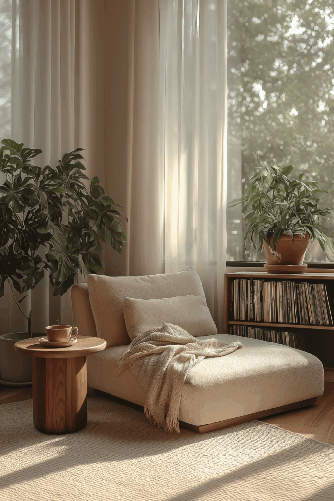 Wellness Tip: Sunlit corners not only boost mood through natural light but also help regulate your circadian rhythm, making it easier to sink into calm. Pair this with minimal background noise, and you’ve created an environment where relaxation and presence can happen almost effortlessly.