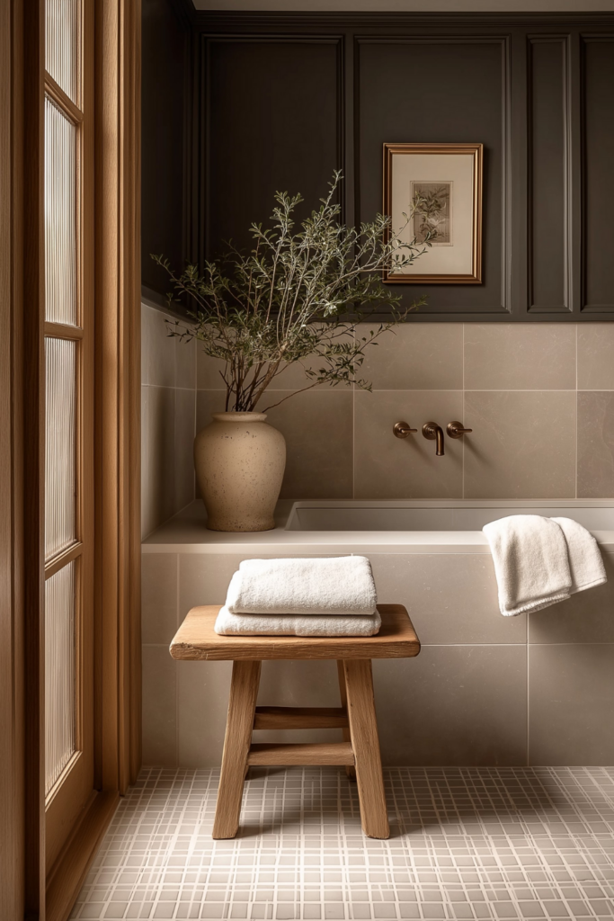 - Ceramic vessels in stone, ivory, or muted earth tones