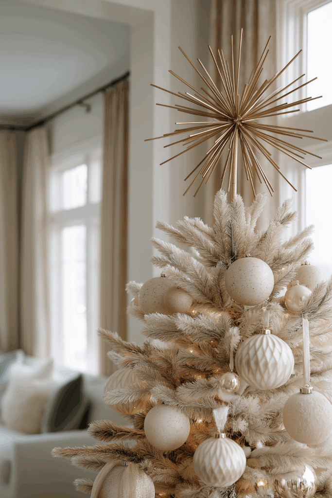 When you’re mastering a neutral Christmas tree styling approach, the topper becomes the quiet final note that ties everything together. Instead of oversized glitter or bold metallic shapes, a sculptural, understated topper creates harmony and softness that aligns beautifully with an Organic Modern home.