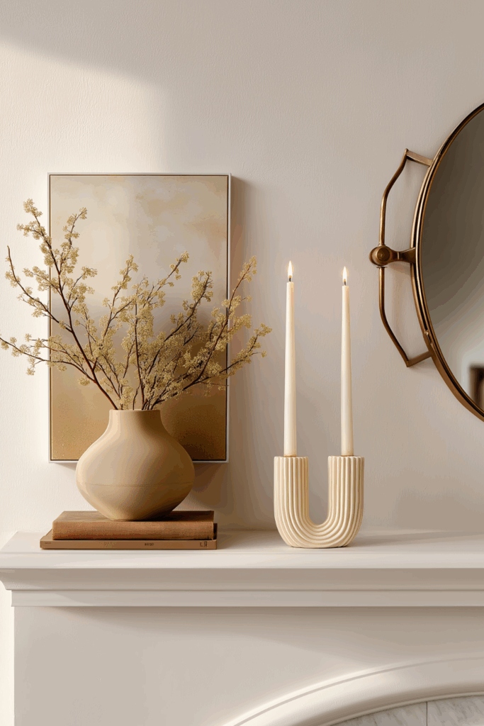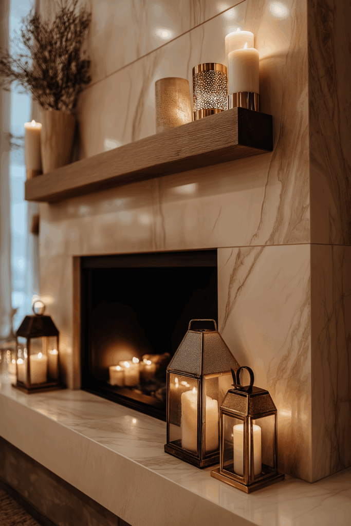 A few well-placed candles can turn your mantel into a glowing statement piece that radiates comfort and quiet sophistication.