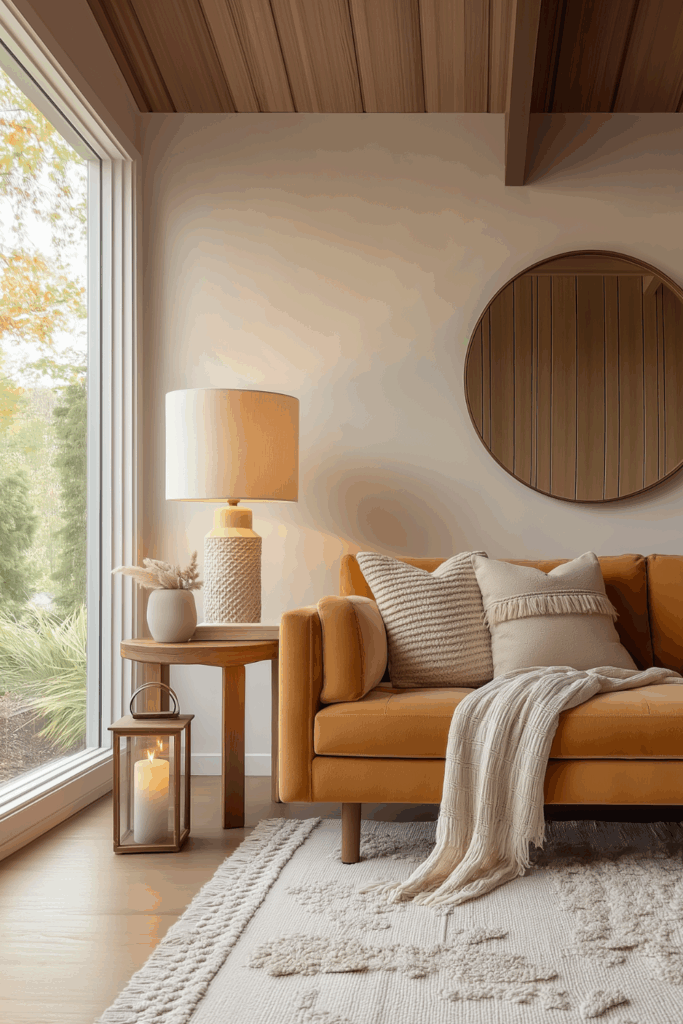 Ceramic or wood-based lamps with linen or woven shades instantly set the tone for your space. These timeless pieces anchor autumn lighting ideas in any room, casting a soft, diffused glow that enhances textures and draws out the warmth of your fall décor. Lamps are versatile enough to work in living rooms, bedrooms, or entryways, giving each corner a serene and welcoming feel.