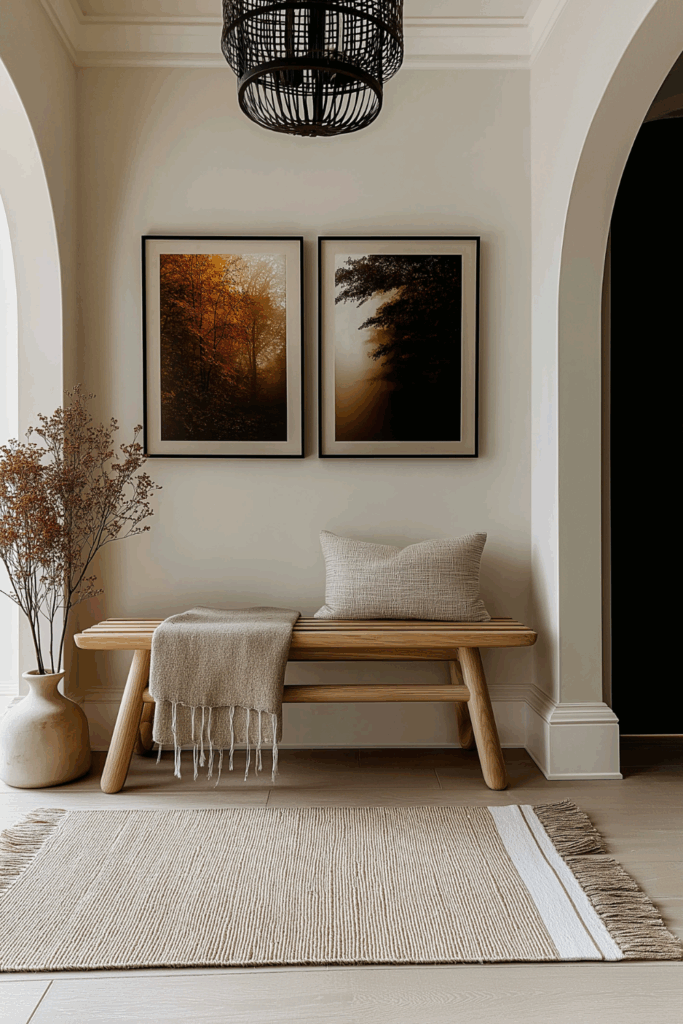 Textiles go far beyond throw blankets and pillows. Small but intentional fabric accents can completely shift the mood of a space, especially in dining areas and entryways. Think soft linen curtains, woven table runners, or even an upholstered bench that adds both comfort and elegance.
