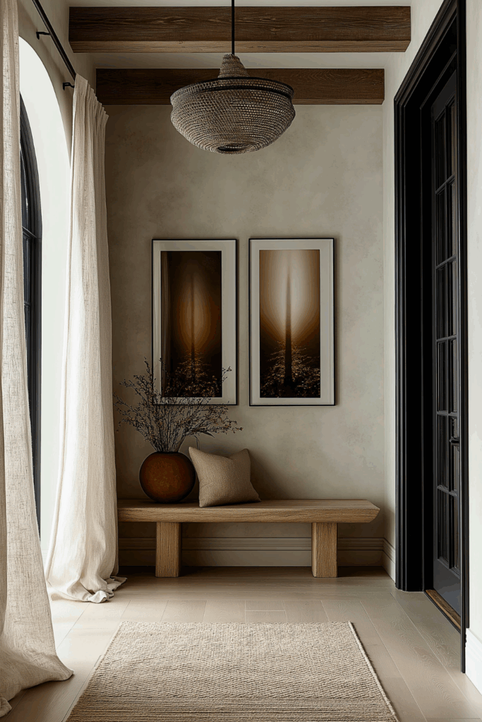 Even transitional spaces benefit from thoughtful touches. A breezy panel or sheer linen drape near a hallway window or sidelights by the front door can soften sunlight and frame your home’s natural light with elegance. It’s a subtle way to weave warmth into the flow of your home