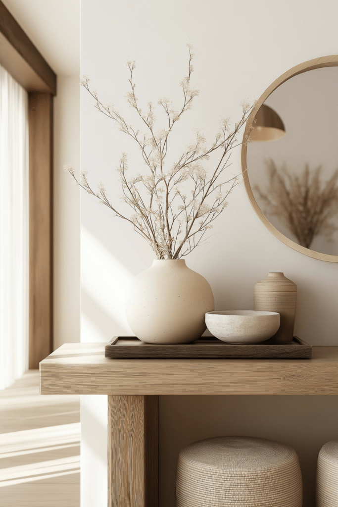 A peaceful anchor spot is a single surface or corner that visually sets the tone for the rest of the space. It can be as simple as: