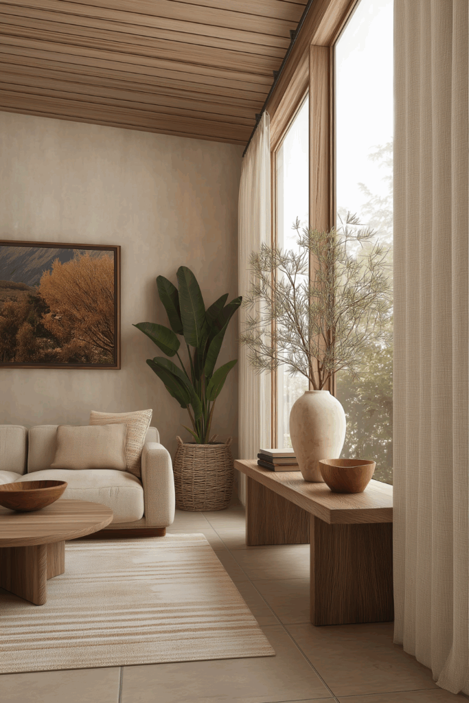 ✨ Design Tip: Choose 2–3 tonal neutrals that complement your natural materials. For example: